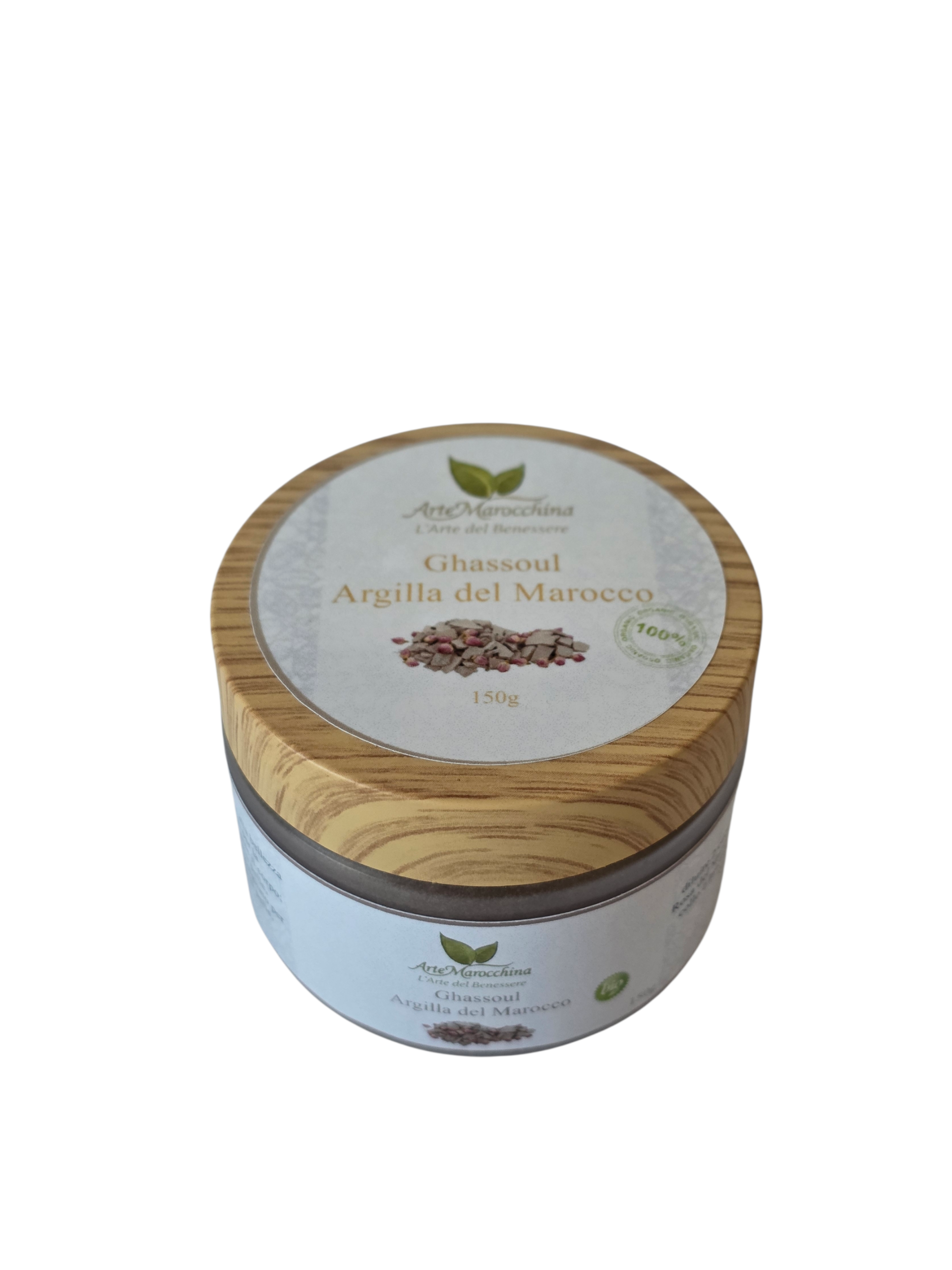 Il Ghassoul è un’argilla naturale estratta esclusivamente nelle montagne dell’Atlante, in Marocco. Il termine deriva dall’arabo ghassala, che significa “lavare”. È usata da secoli nei rituali dell’Hammam per detergere viso, corpo e capelli in modo delicato e naturale.
