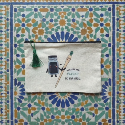 Questa splendida trousse artigianale è realizzata con un ricco tessuto ispirato ai mosaici Zellige. Robusta e compatta, è perfetta come beauty case, custodia per gioielli o come pochette da viaggio.